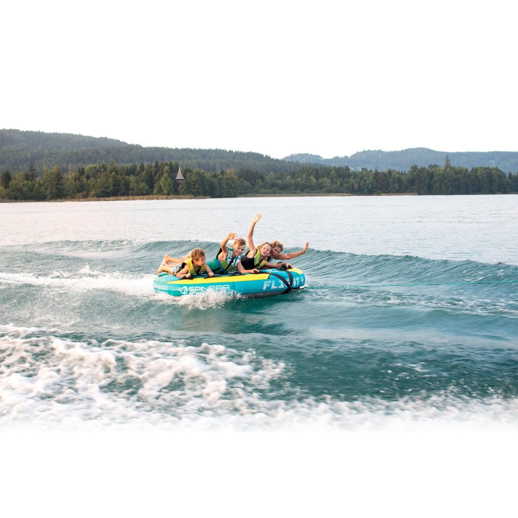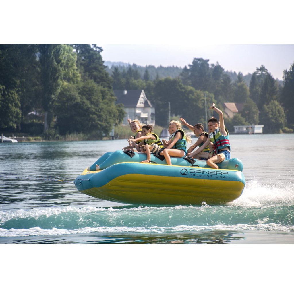 La bouée tractée classique est le moyen le plus facile et le moins couteux pour s’amuser en groupe. La bouée ne nécessite pas de capacité physique.